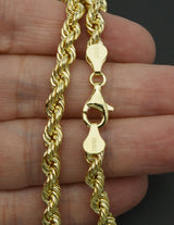 10K Yellow REAL GOLD Hollow Rope Chain Bracelet 6mm 7'' 8''