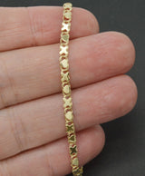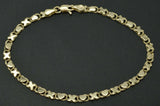 10k Yellow Solid Gold Mirrored Heart & kiss Link Charm Bracelet 7'' 8''