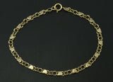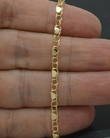 10k Yellow Solid Gold Mirrored Heart Link Chain Charm Bracelet 9''