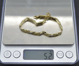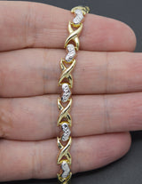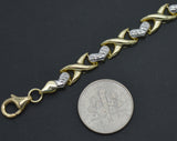 Real 10K Solid Two-tone Gold 7'' Shiny Heart Charm XO Love Bracelet 5.2 gr