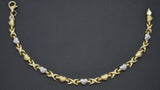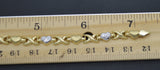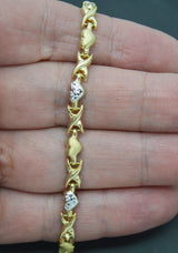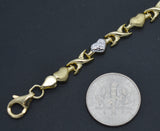 Real 10K Solid Two-tone Shiny Gold 7'' XO Love Heart Charm Bracelet 4.4 gr