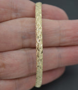Real 10K Yellow Solid Gold X Design Hugs Diamond Cut Bangle Bracelet 3.0g 7"- 8"