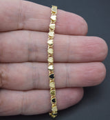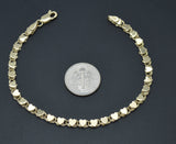 Real 10k Yellow Solid Gold 3.6mm Mirrored Heart Link Chain Charm Bracelet 7"- 8"