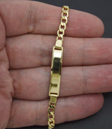 REAL 10K Yellow Gold 6'' Flat Curb ID baby Children's Bracelet + Engraving 3.1gr