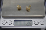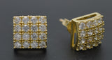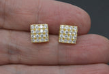 Real 10K Solid Yellow Gold 8.9mm Halo Square CZ Stud Earrings 2.4gr Men-Women