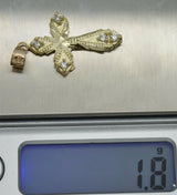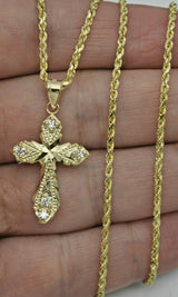 Real 10k Yellow Gold CZ Cross Filigree Pendant + Chain 16''-24''