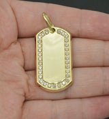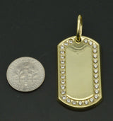 1.80" Real 10K Yellow Gold 3D Dog Tag Plain CZ Shiny Pendant Charm 5.6gr