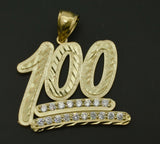 10K Solid Gold Created Diamond Emoji 100 Pendant 6.5gr