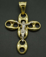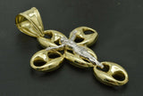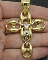 10K Yellow Gold Men's Puffed Mariner Crucifix Jesus Cross Pendant Charm 2.75''