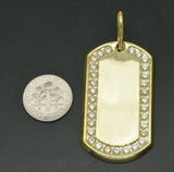 2.25" Real 10K Yellow Gold big 3D Dog Tag Plain CZ Shiny Pendant Charm 7.2gr