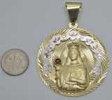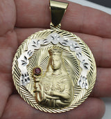 Real 10K Solid Yellow Gold Mary Diamond Cut Nugget Medallion Pendant 8.6gr