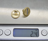 Real 10k Gold Round Last Supper Diamond-Cut Medallion Earrings 15.3 mm 2.4 gr