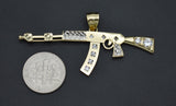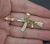 Real 10K Solid Yellow Gold 56.7mm Shiny Machine Gun Rifle Pendant 3.4gr
