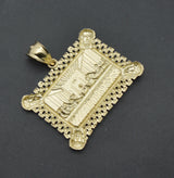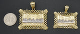 Real 10K Solid Yellow Gold Shiny Rectangle Railroad Last Supper Jesus Pendant