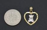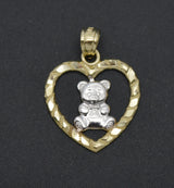 Real 10K Solid Yellow Gold Teddy bear Inside the Heart Shiny Pendant