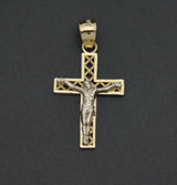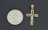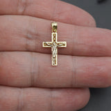 Real 10K Solid Yellow White Gold Cross Charm Jesus Crucifix Pendant 0.8gram