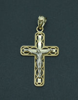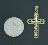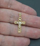 Real 10K Solid Yellow White Gold Diamond Cut Jesus Cross Pendant 1.1grams