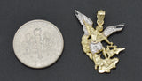 Real 10K Solid Yellow-White Gold Saint San Michael Miguel Charm Pendant 1.3gr