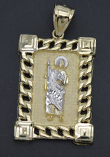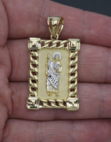 Real 10K Solid Yellow White Gold Shiny Diamond Cut Saint Jude Pendant 6.5gr