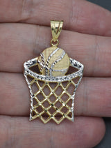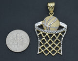 Real 10K Two-Tone Gold 41mm Diamond Cut Basketball Hoop Net Sport Pendant 2.0gr