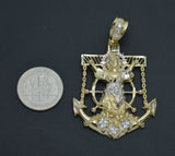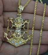 Real 10K Yellow Gold Baby Jesus Anchor Pendant Diamond Cut + Chain 16"-24"