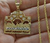 Real 10K Yellow CZ Gold Last Supper Diamond Cut Pendant + Chain