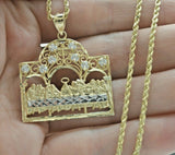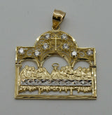Real 10K Yellow Gold CZ Last Supper Diamond Cut Pendant + Chain 16"-24"