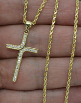 Real 10k Yellow Gold CZ Cross Pendant + Chain 16''-24''