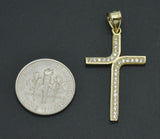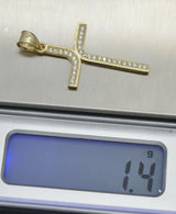 Real 10k Yellow Gold Cross CZ Pendant 1.38" + Chain 16"-24"