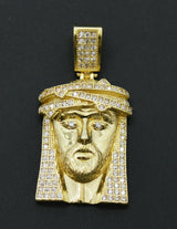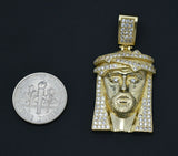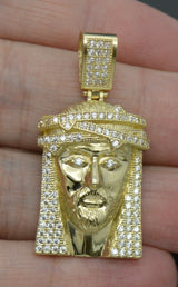 Real 10k Yellow Gold Cz 3D Jesus Head Pendant