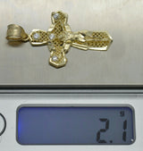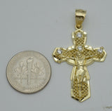 Real 10k Yellow Gold CZ Jesus Crucifix Cross Filigree Pendant + Chain 16"-24"