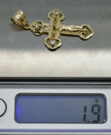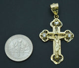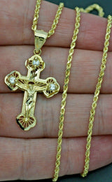 Real 10k Yellow Gold CZ Jesus Crucifix Cross Pendant + Chain 16"-24"