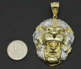 Real 10k Yellow Gold Diamond Cut 3D Big Lion Head Pendant over 2" length 8gr