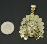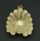 Real 10k Yellow Gold Diamond Cut big Indian Head Pendant 47mm length 7.2 grams