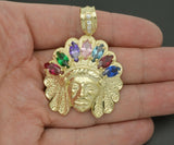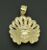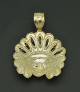 Real 10k Yellow Gold Diamond Cut big Indian Head Pendant 52mm length 8.3 grams