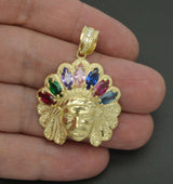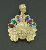 Real 10k Yellow Gold Diamond Cut Indian Head Pendant 1.56' length 5.3 grams
