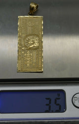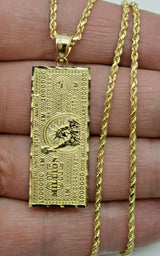 Real 10k Yellow Gold Diamond Cut One Million Dollar Bill Pendant + Chain 16"-24"