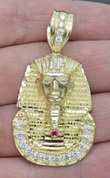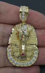 Real 10k Yellow Gold Egyptian King Head Diamond Cut Pendant