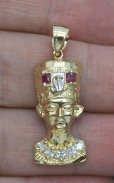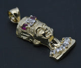 Real 10k Yellow Gold Egyptian King Head Diamond Cut Pendant 3D