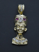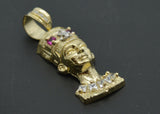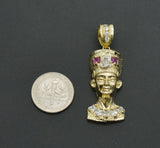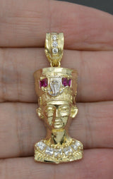 Real 10k Yellow Gold Egyptian King Head Diamond Cut Pendant 3D