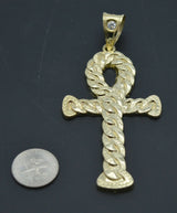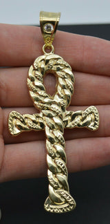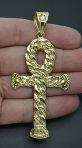 Real 10K Yellow Gold Huge Ankh Cross Jesus Miami Cuban Pendant Charm