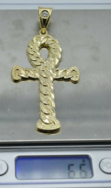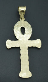 Real 10K  Yellow Gold big Huge Ankh Cross Jesus Pendant Charm Diamond Cut 6.6gr make a thoughtful gift.