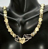 Real 10k Yellow Gold "hugs & Kisses" X & Hearts "I love you" Necklace 8mm 21"