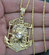 Real 10K Yellow Gold Jesus Head Anchor Diamond Cut Pendant 6g + Chain 16"-24"