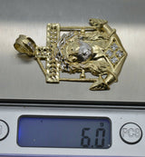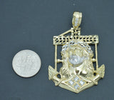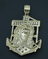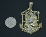 Real 10K Yellow Gold Jesus Head Anchor Diamond Cut Pendant + Chain