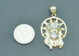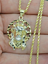 Real 10K Yellow Gold Jesus Head Diamond Cut Pendant + Chain