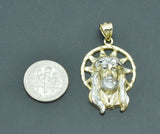 Real 10K Yellow Gold Jesus Head Diamond Cut Pendant 4.1gr + Chain 16"-24"