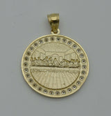 Real 10K Yellow Gold Last Supper Charm Pendant Diamond-Cut 3.2Grams