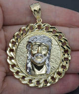 Real 10k Yellow Gold Men Round Jesus Head Pendant Medallion Charm 46.8mm 12.2gr