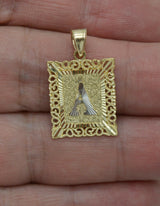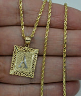Real 10k Yellow Gold Square Initial Letter Pendant available A-Z + Chain 16"-24"